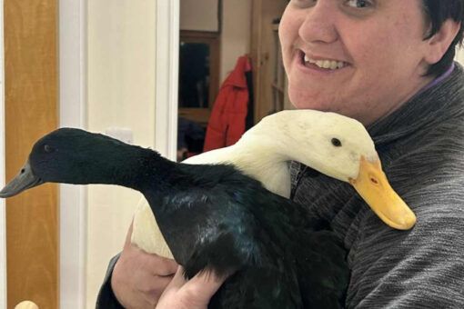 Kat’s love for animals quickly became a source of joy and purpose. With encouragement, she returned to a small animal sanctuary she enjoyed and started a new adventure: hatching chicks and ducklings using an incubator. Most returned to the sanctuary, but two ducks stayed – Quackers and Daisy – hand-reared by Kat. She even installed cameras so she could check on them outside, though she still enjoys bringing Quackers into the main house to greet everyone. Thanks to her care, Quackers even uses a puppy pad, a testament to Kat’s dedication and patience.